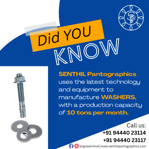 • At Senthil Pantographics, we manufacture high-quality washers using advanced technology, delivering up to 10 tons per month to meet bulk industrial demands.