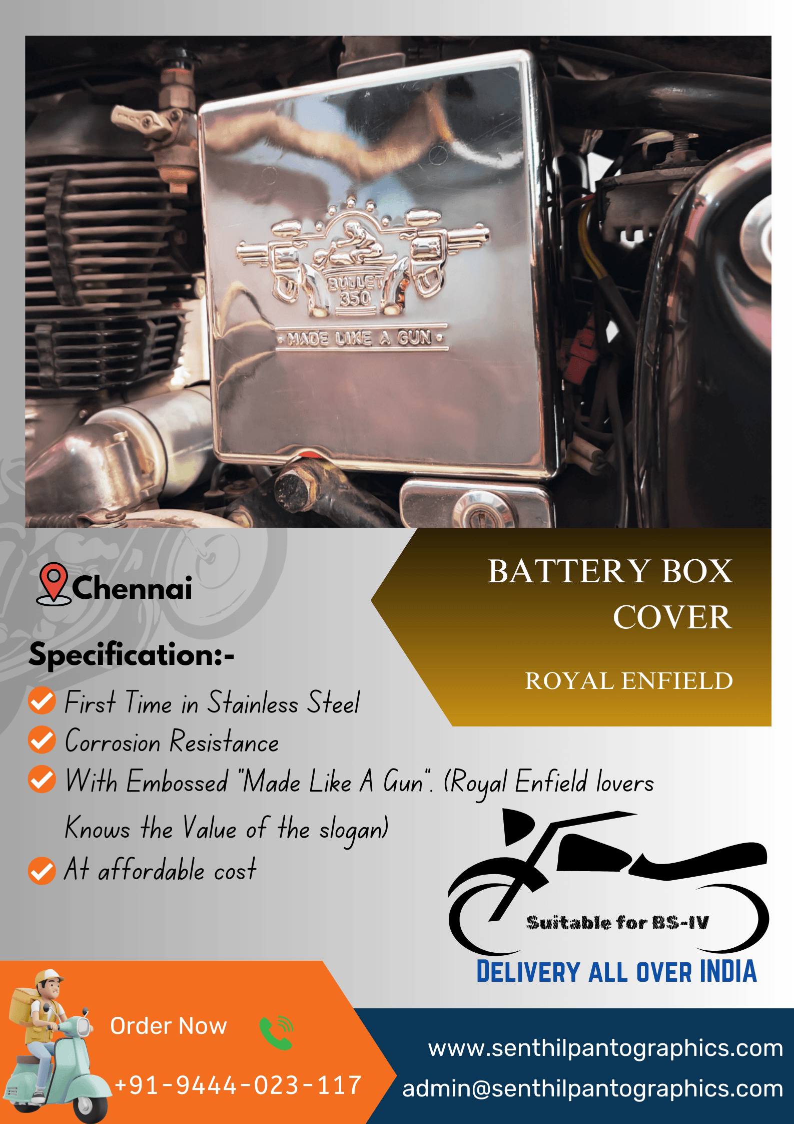 Enhance Your Ride with Our Custom Battery Box Covers for Royal Enfield BS4 Models!