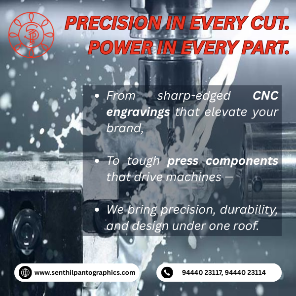 • Precision Meets Performance. Crafting Excellence Since 1979. • From bold CNC engravings that make your brand shine to press components built to drive industry — we bring decades of craftsmanship into every detail. • Whether it's design, durability, or deadline — Senthil Pantographics delivers. ✅ Custom. ✅ Consistent. ✅ Cutting-edge. • Explore our legacy in metal. DM us or call us to start your next project! For any enquiries, please use the contact information below. Mail ID : admin@senthilpantographics.com Mobile Number : +91 94440 23114 , +91 94440 23117 , +91 73580 35916 Website Link : https://www.senthilpantographics.com/ #CNCengraving #PressComponents #SenthilPantographics #MetalCraftsmanship #MadeInIndia #PrecisionEngineering #CustomFabrication #EngravingExperts #PressWorkSolutions #MachineComponents #IndustrialEngineering #Since1979 #DurableDesigns #EngineeringExcellence #MetalPartsManufacturing #CNCWorks #PressMachineParts #LegacyInMetal #relatablecontent #viralreelsindia #foryoupage #reelsalgorithm2025 #growthhackreels #exploremore #trendingaudio #growwithreels #millionviewschallenge #IGGrowthHacks #AlgorithMastery #SocialMediaGame
