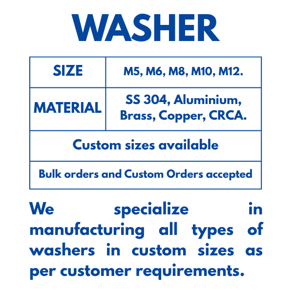 #WasherManufacturer #SS304Washer #CustomWashers #IndustrialWashers #PlainWashers #MetalWashers #AluminiumWasher #BrassWasher